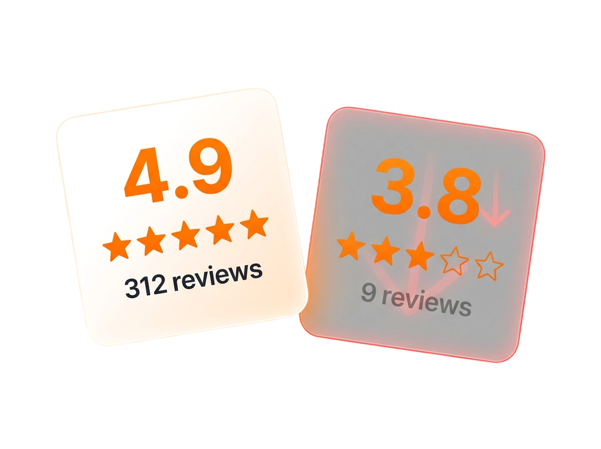 You do quality work. But your Google profile shows 14 reviews. Your competitor down the street has 130. Most people never scroll past the first result. You're not it.